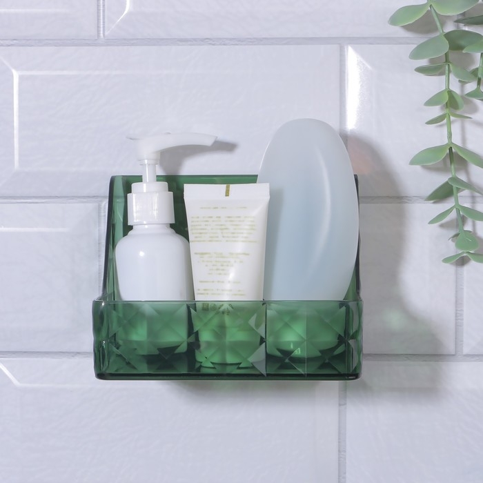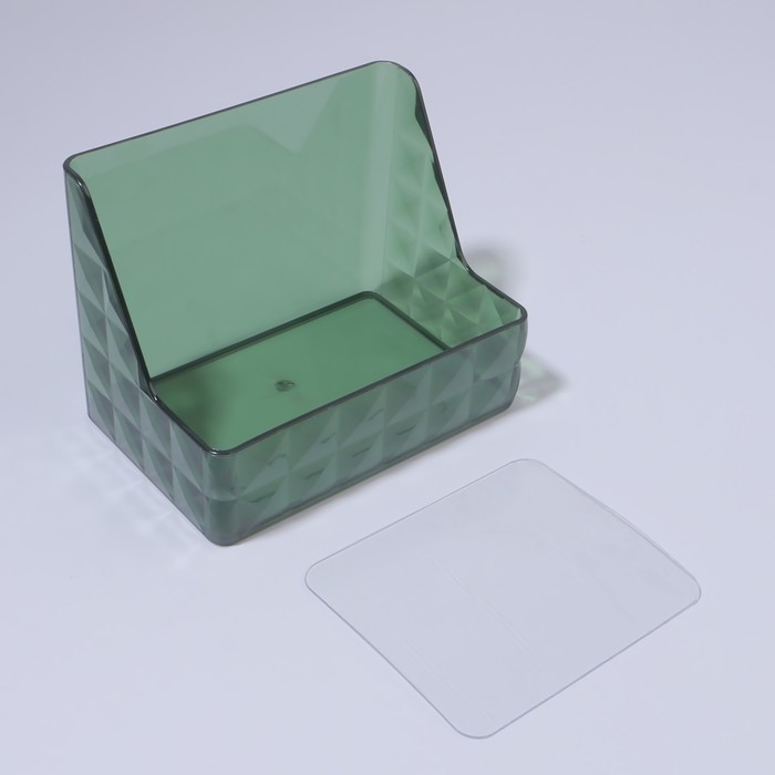 Органайзер для хранения «GREEN», навесной, 1 секция, с клеевой основой, 11,8 × 7,8 × 9 см, цвет полупрозрачный/зелёный