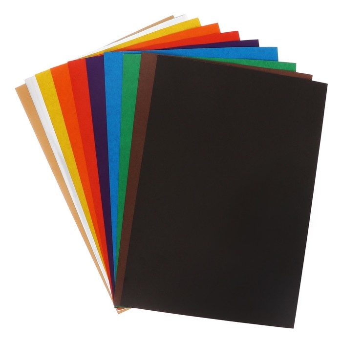 Картон цветной А4, 10 листoв, 10 цветов, волшебный (золото+серебро) Calligrata, немелованный 220-260 г/м2, в папке