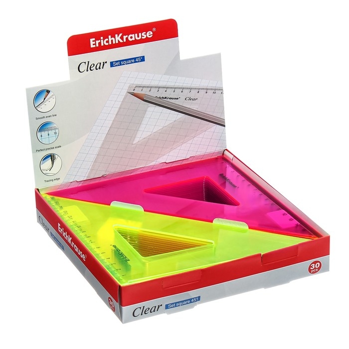 Прозрачный угольник 45 градусов из высококачественного пластика. Длина разметки – 16см.