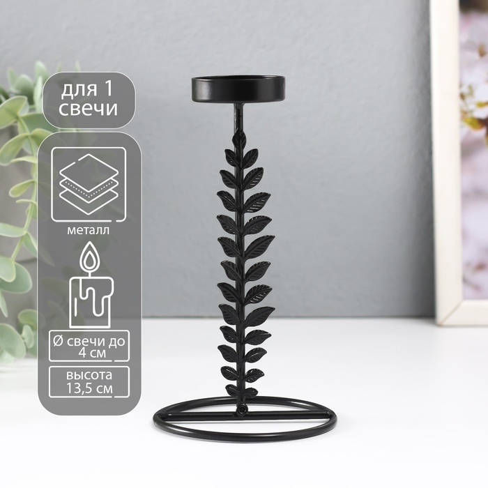 Подсвечник металл на 1 свечу "Веточка с листьями" d=4 см 8х8х13,5 см
