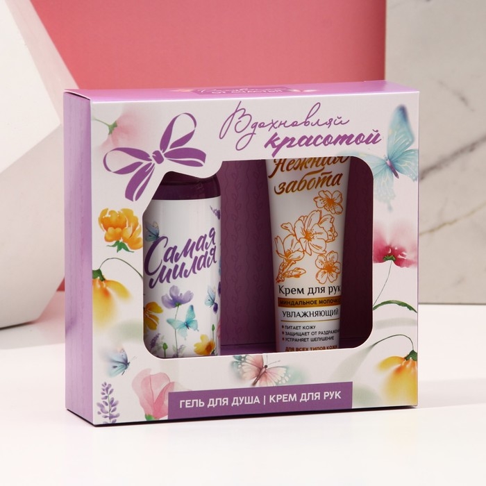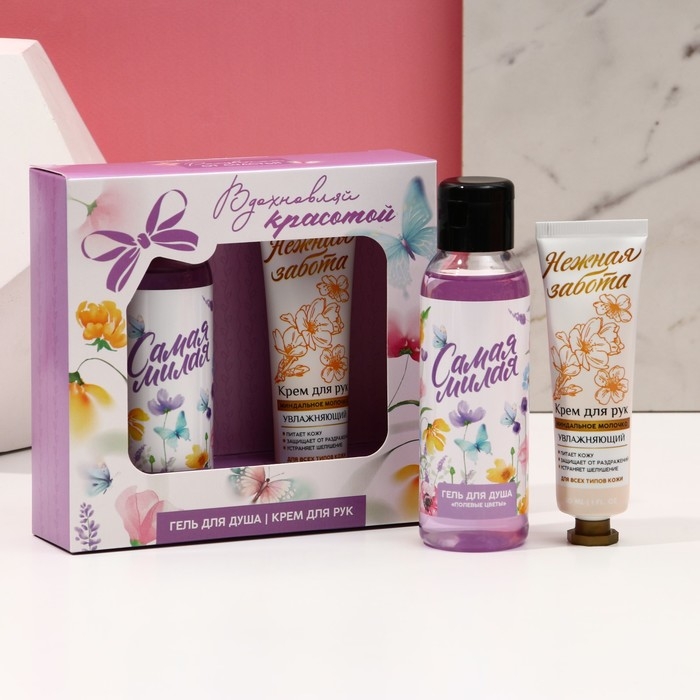 Подарочный набор косметики «Вдохновляй красотой!», гель для душа 100 мл и крем для рук 30 мл, ЧИСТОЕ СЧАСТЬЕ