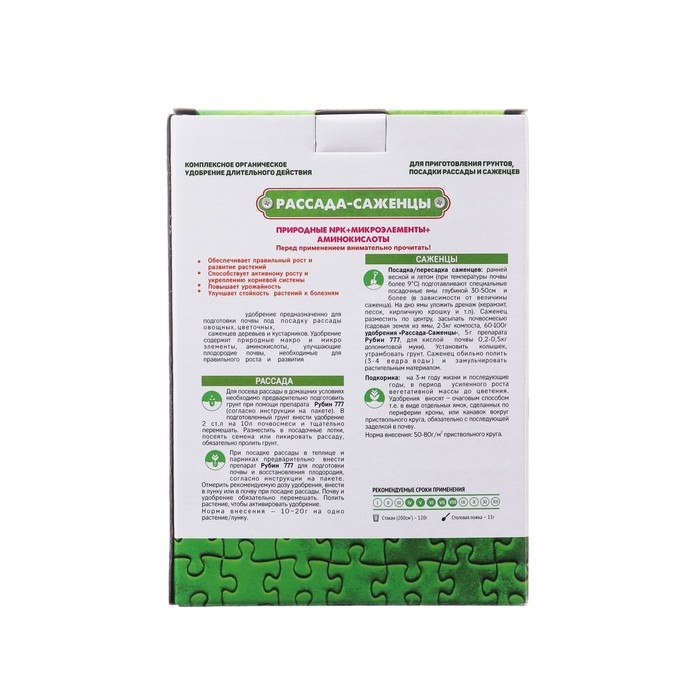 Удобрение предназначено для подготовки почвы под посадку рассады овощных, цветочных, саженцев деревьев и кустарников. Удобрение содержит природные макро и микро элементы, аминокислоты, улучшающие плодородие почвы, необходимые для правильного роста и развития. Обеспечивает правильный рост и развитие растений. способствует активному росту и укреплению корневой системы. повышает урожайность. Улучшает стойкость растений к болезням.