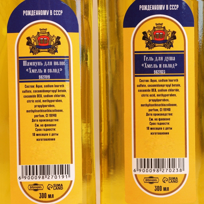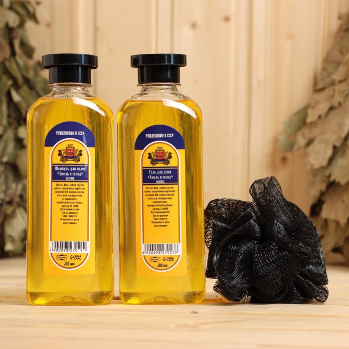 Шампунь и гель для душа "Хмель и солод" по 300 мл + мочалка