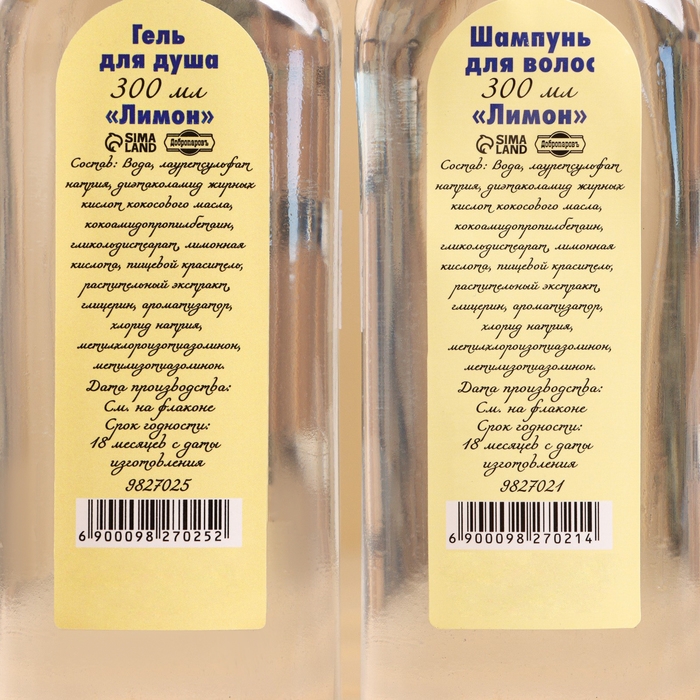 Шампунь и гель для душа "Лимон" по 300 мл + мочалка