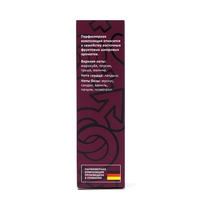 - Верхние ноты: маракуйя, груша, малина, персик, черная смородина, песок