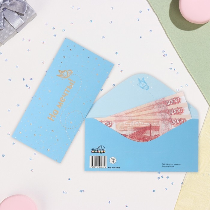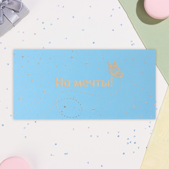 Конверт для денег "На мечты" софт-тач, тиснение, голубой фон, 17х8 см