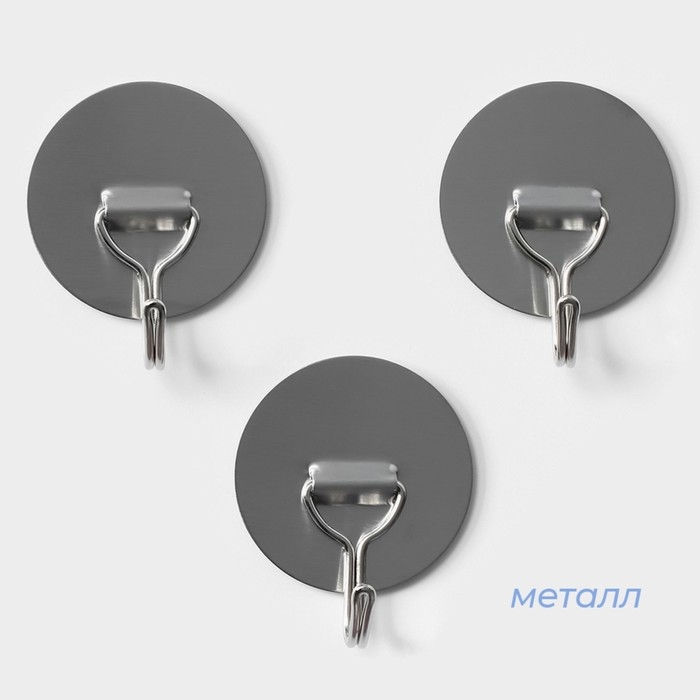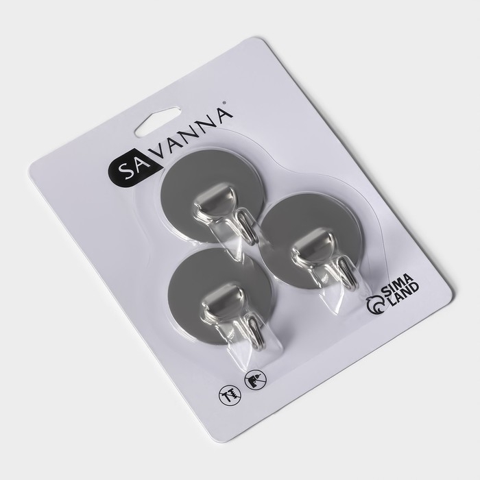 Крючки самоклеющиеся SAVANNA «Круг», 3 шт, металл, 4,5×4,5×2 см