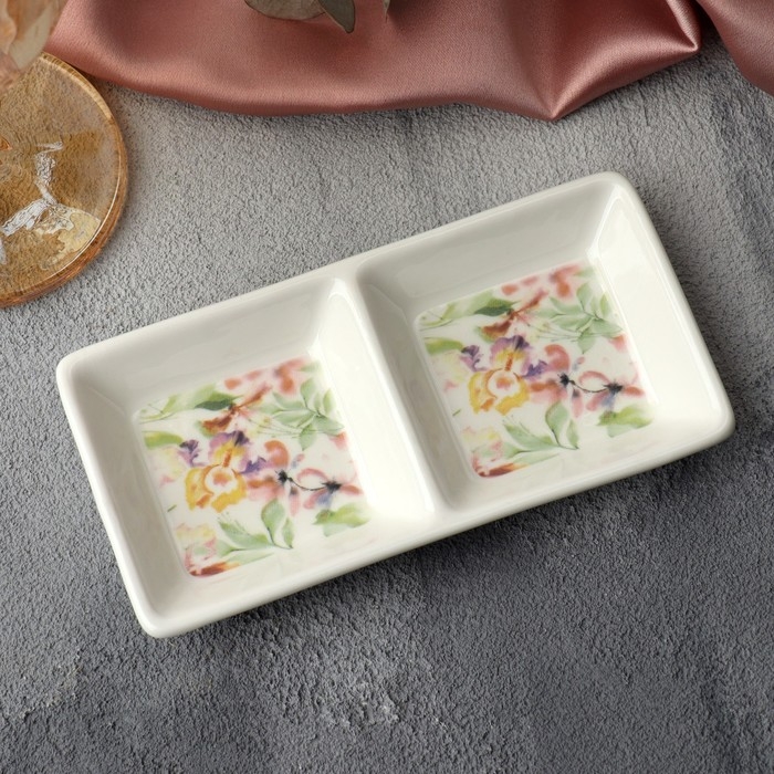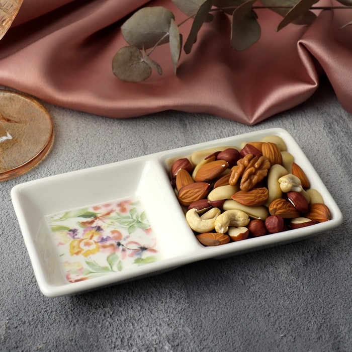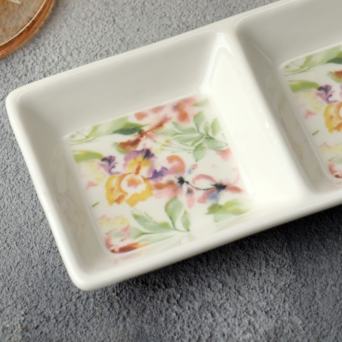 Менажница керамическая «Цветы», 13.8 х 7 см, цвет белый