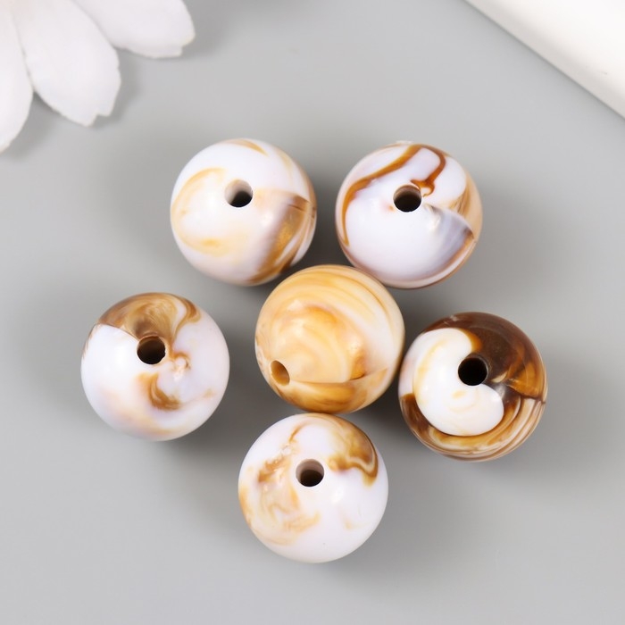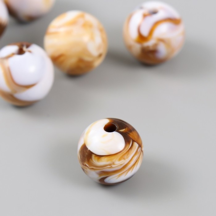 Бусины для творчества пластик "Разводы краски. Коричневые" d=1,8 см набор 20 гр