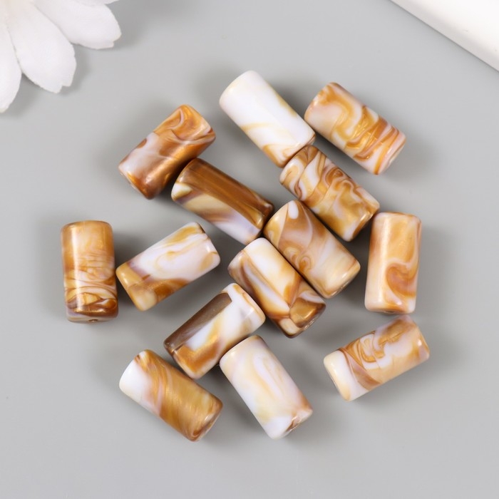 Бусины для творчества пластик "Кофе с молоком. Цилиндр" набор 20 гр 1х1х1,9 см