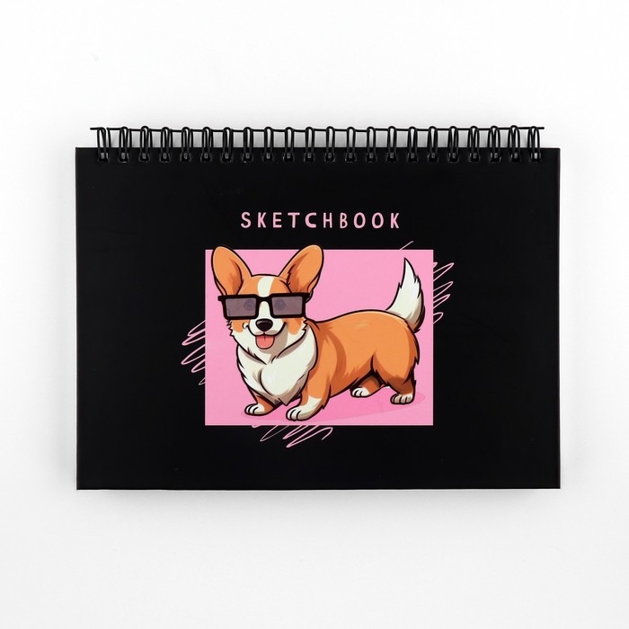 Скетчбук в твердой обложке на гребне А5, 80 л. 100 г/м «Корги»