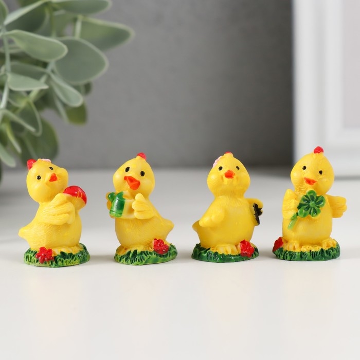 Сувенир полистоун "Цыплёнок на травке" МИКС 2х2х3,2 см