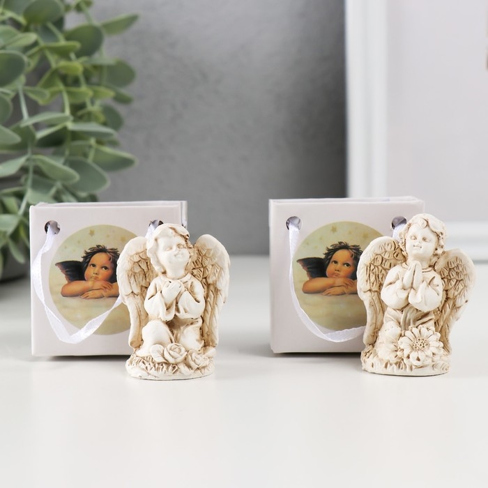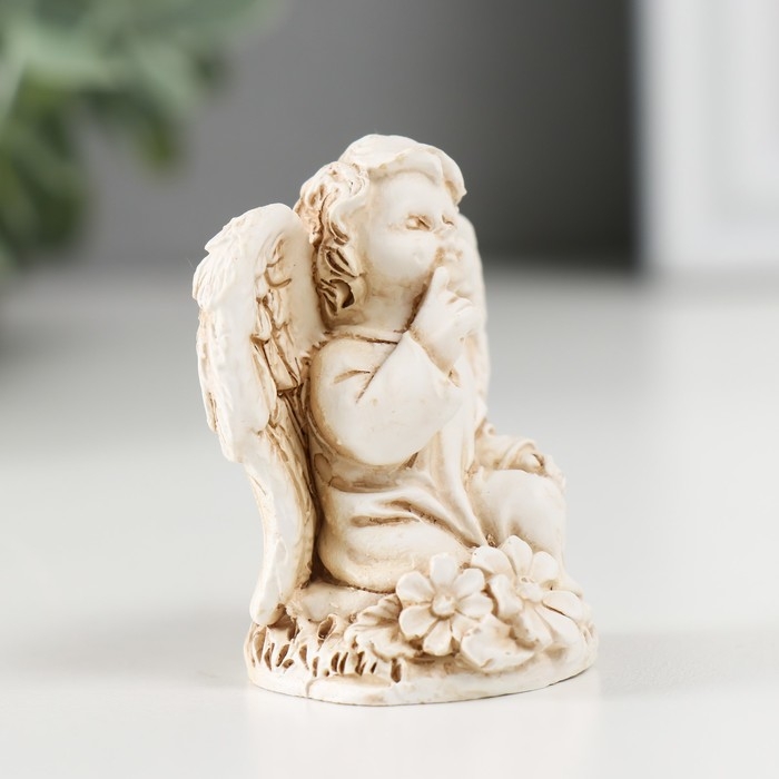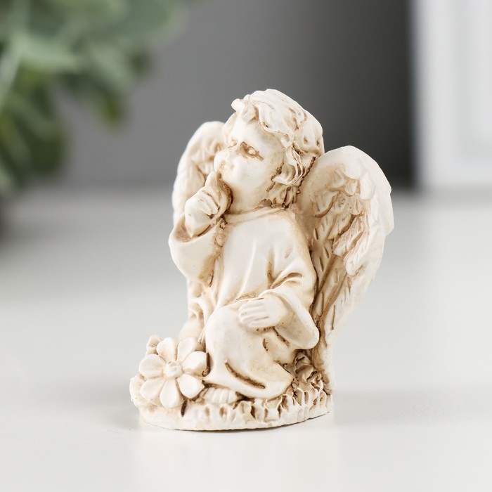 Сувенир полистоун "Ангелочек сидит на цветах" МИКС 3х4х4,5 см