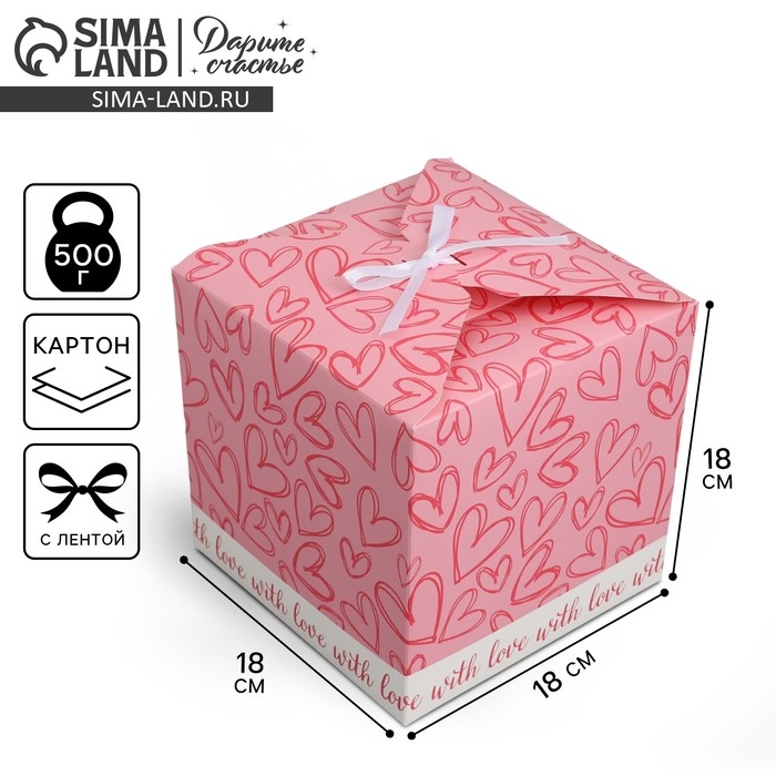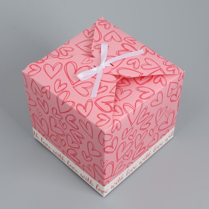 Коробка подарочная складная, упаковка, «Сердечки», 18 х 18 х 18 см