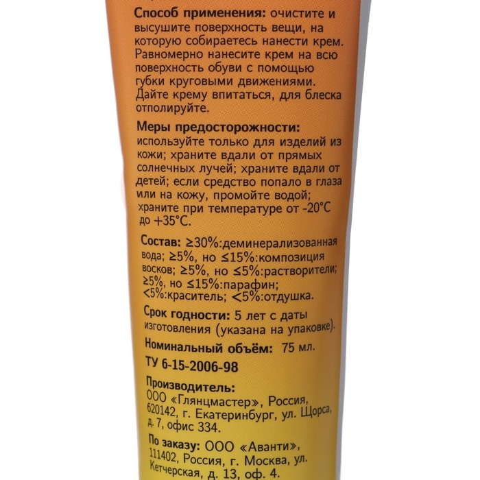 Крем для обуви в тубе, черный, 78мл