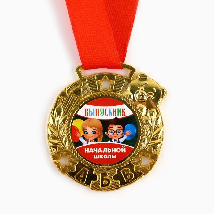 Медаль школьная на Выпускной «Выпускник начальной школы», на ленте, золото, металл, d = 5,5 см
