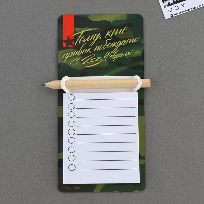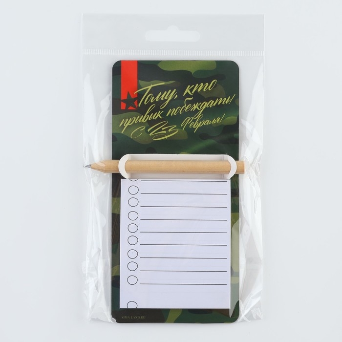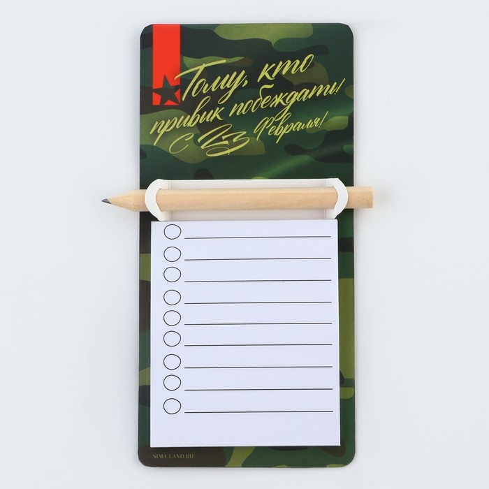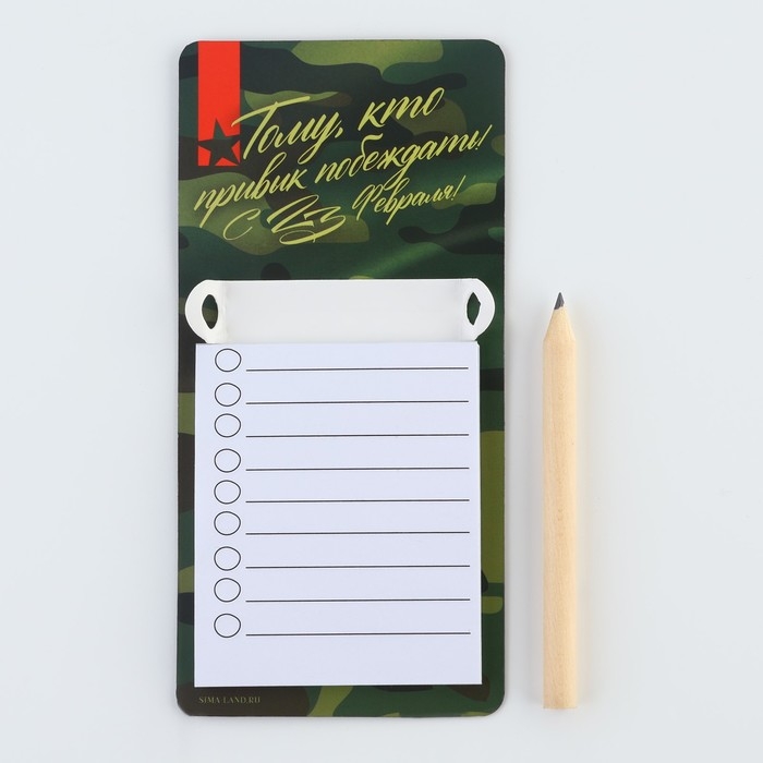 Магнит с блоком для записи и карандашом «С 23 февраля», 7 х 14,4 см