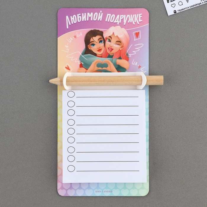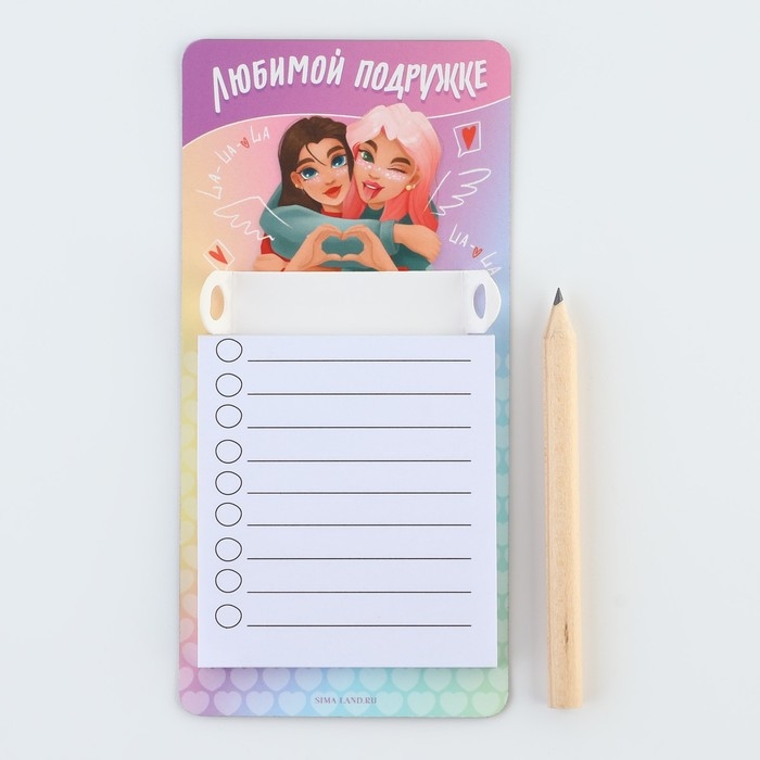 Магнит с блоком для записи и карандашом, сувенир «Любимой подружке», 7 х 14,4 см.