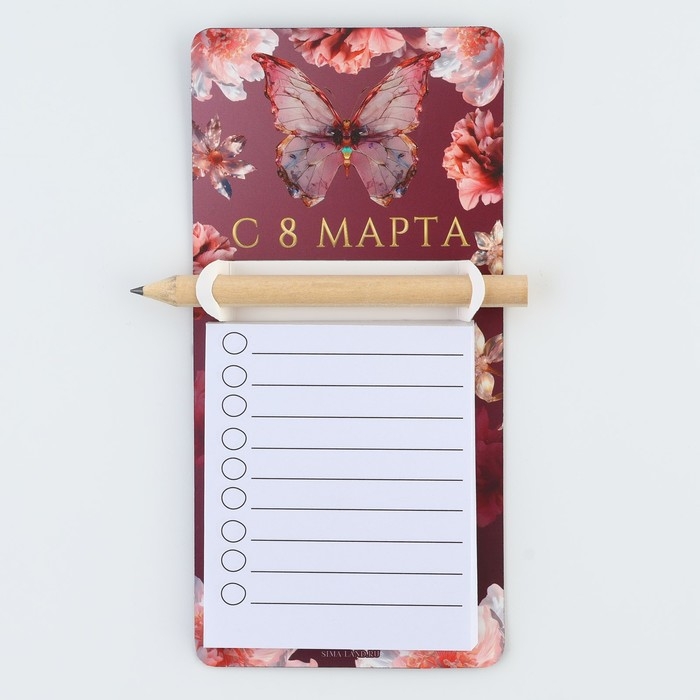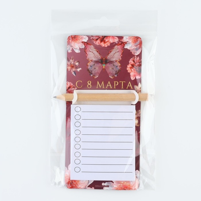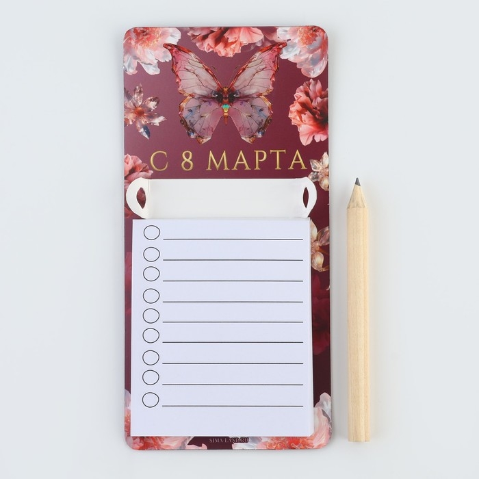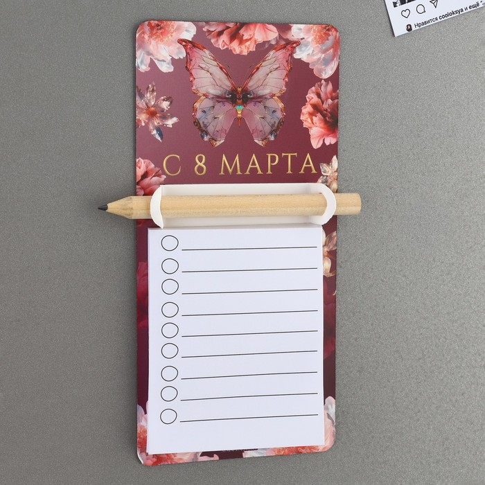 Магнит с блоком для записи и карандашом «С 8 марта», 7 х 14,4 см