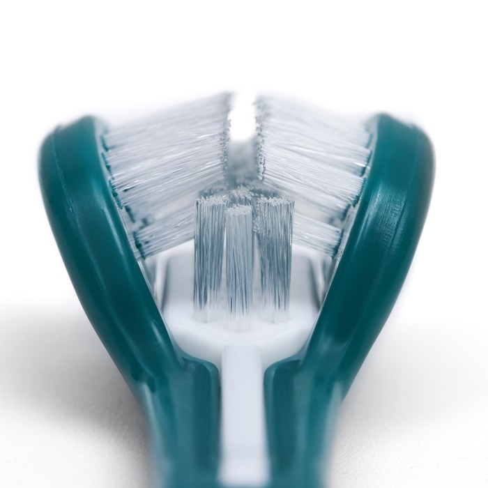 - Полное очищение: щётка имеет дизайн с 360-градусным покрытием щетинок, что позволяет очищать зубы со всех сторон одновременно, обеспечивая максимальную гигиену.