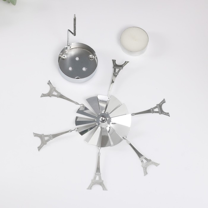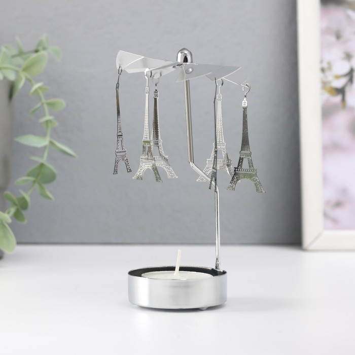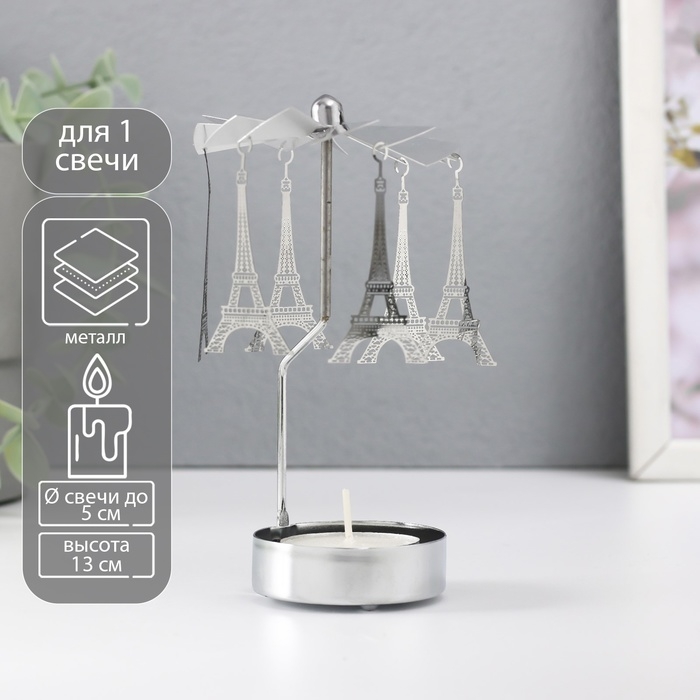 Подсвечник металл на 1 свечу "Карусель. Париж" d=5 см серебро 7,5х7,5х13 см