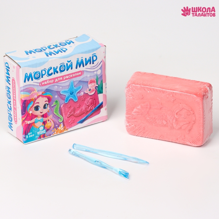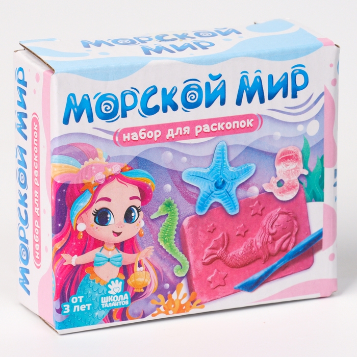 Набор для раскопок «Морской мир» — набор юного археолога, который погрузит вашего ребёнка в изучение морского царства. Он поможет развить любознательность и тягу к науке, его мелкую моторику рук. Усилит мотивацию к познаниям интересная игрушка внутри гипсового слепка.