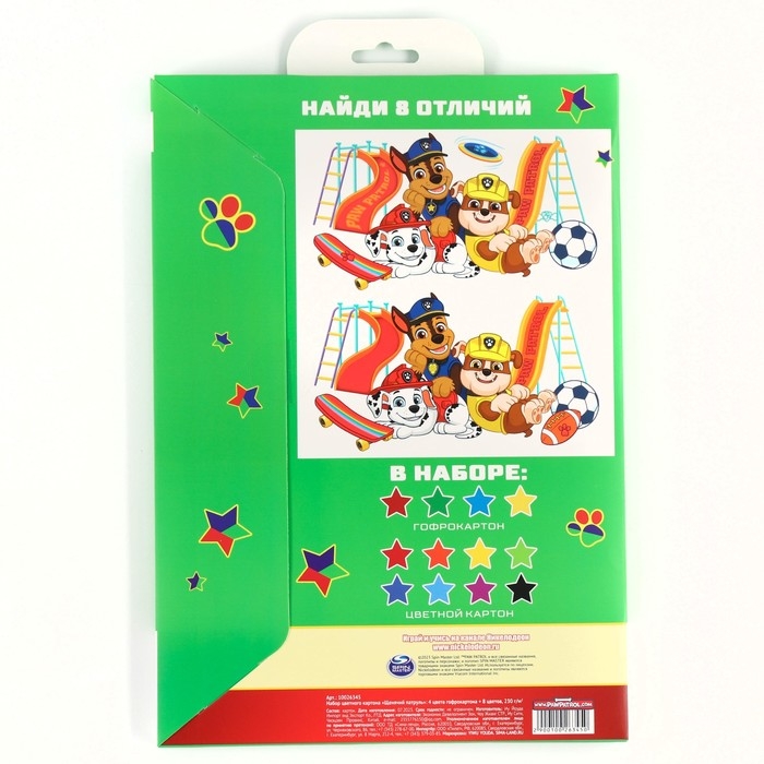 Картон цветной гофрированный, А4, 12 листов, 12 цветов, немелованный, двусторонний, в папке, 230 г/м², Щенячий патруль