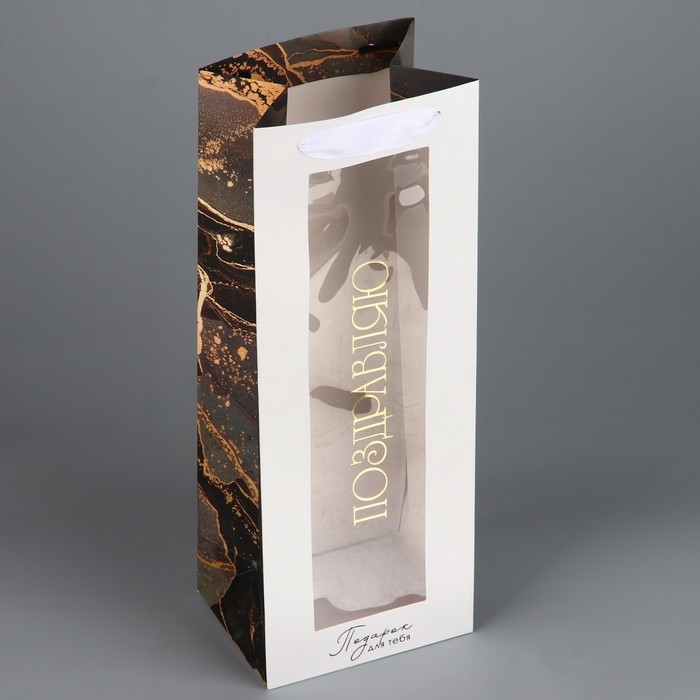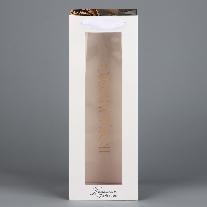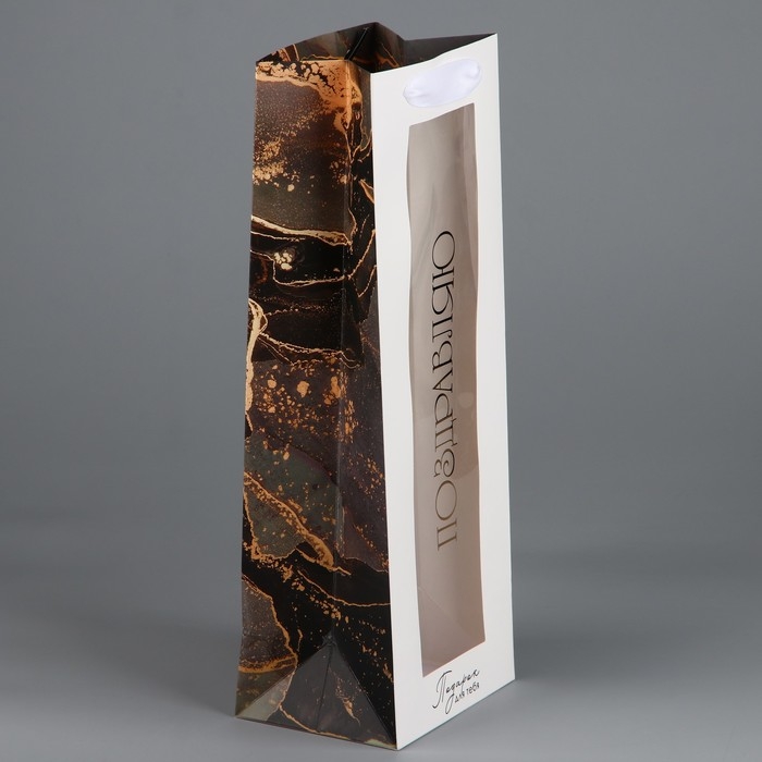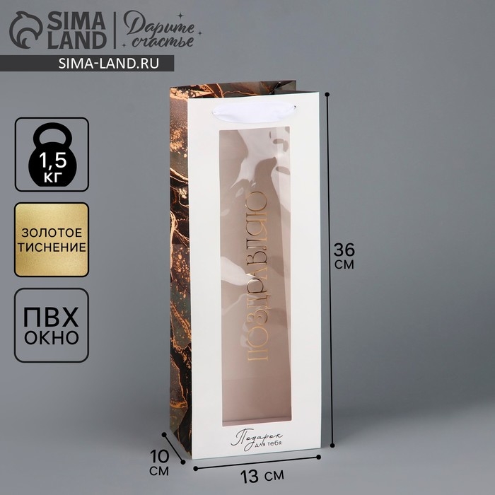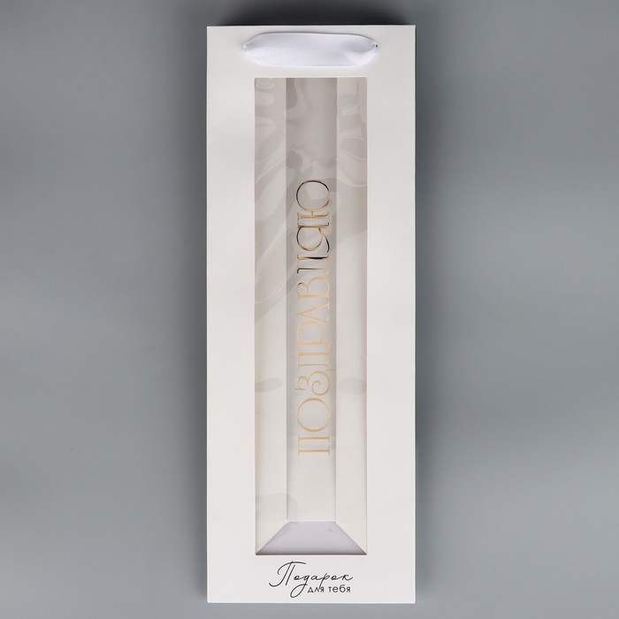 Пакет подарочный под бутылку, упаковка, «Поздравляю», цветы, 36 х 13 х 10 см