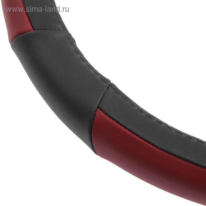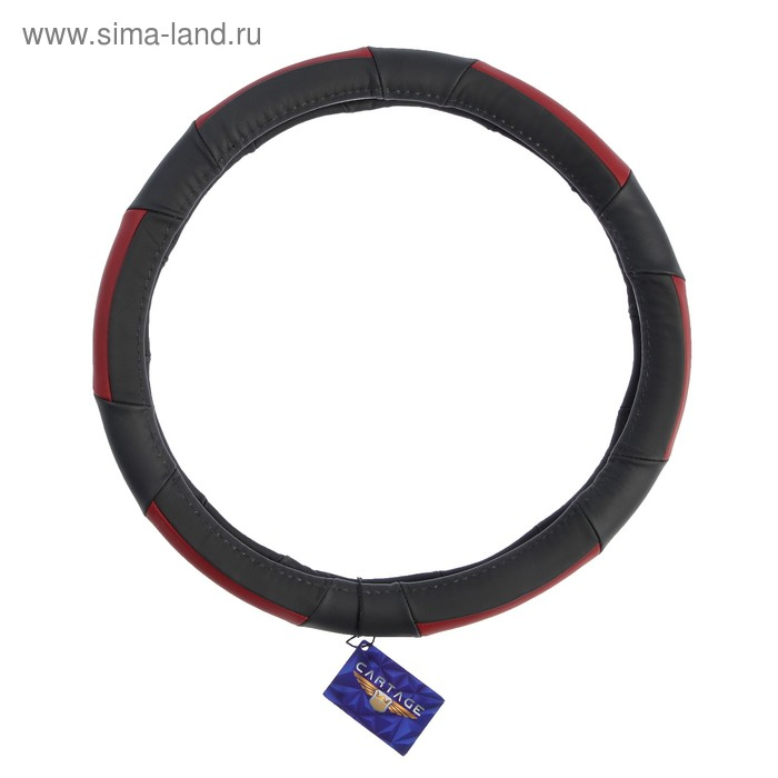 Оплетка на руль Cartage, натуральная кожа, размер 38 см, черно-красный