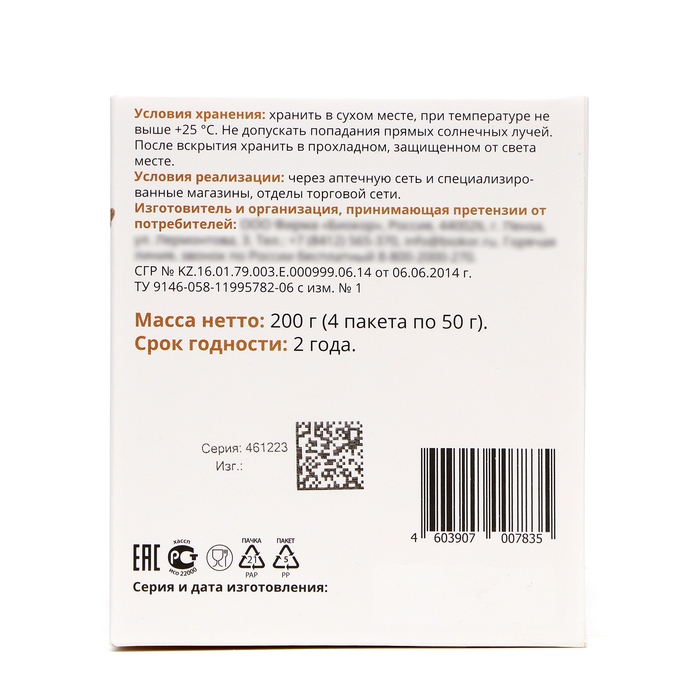 Способ применения: взрослым и детям старше 14 лет во время еды принимать по 1 чайной ложке (2 г) 1 раз в день. Продолжительность приема: 4-6 недель. При необходимости прием можно повторить. Возможны повторные приемы в течение года.