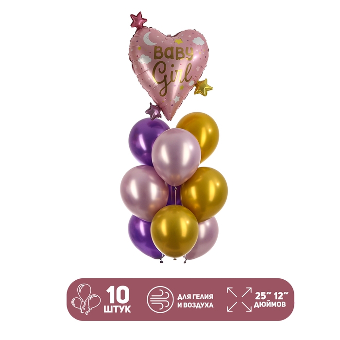 Набор шаров «Baby girl», латекс, фольга, 10 шт.