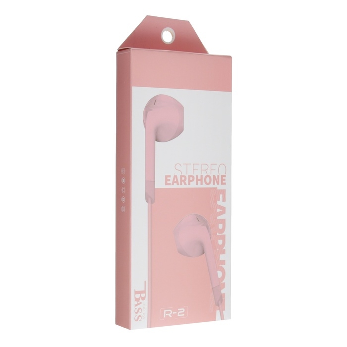 Наушники R-2, проводные, вкладыши, микрофон, 1 м, Jack 3.5 мм, красные