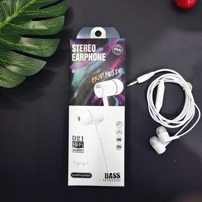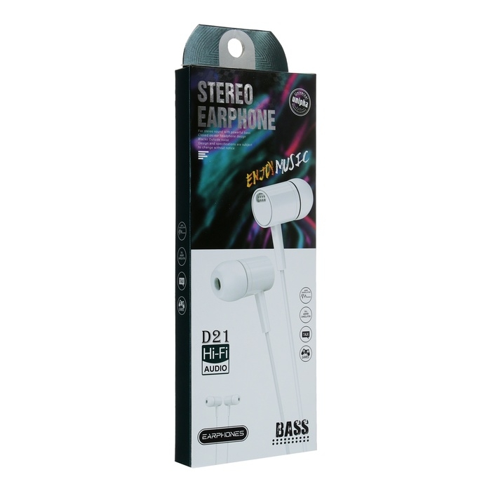 Наушники D21, проводные, вакуумные, микрофон, 1 м, Jack 3.5 мм, белые