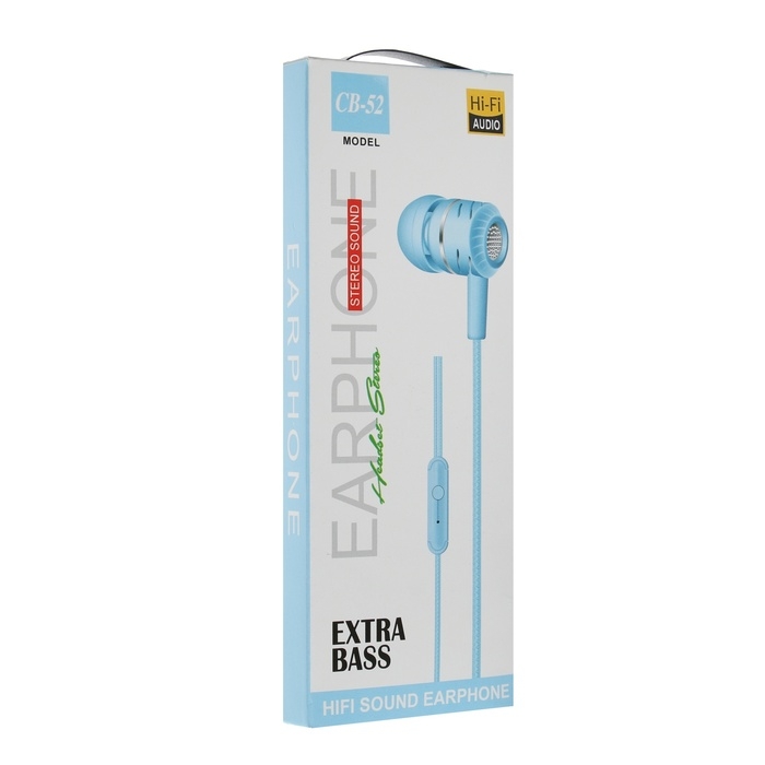 Наушники CB-52, проводные, вакуумные, микрофон, 1 м, Jack 3.5 мм, синие