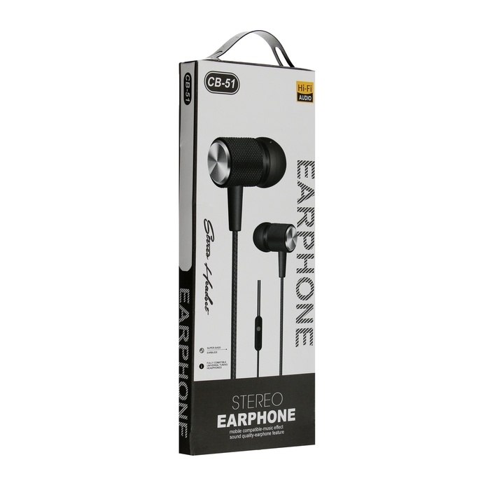 Наушники CB-51, проводные, вакуумные, микрофон, 1 м, Jack 3.5 мм, черные