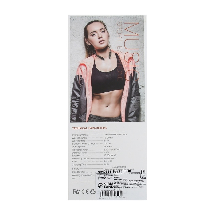 Наушники спортивные M6, беспроводные, вкладыши, ВТ 4.2, микрофон, 200 мАч, чёрные