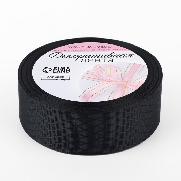 Лента декоративная «Ромбы», 25 мм × 9,1 ± 0,5 м, цвет чёрный