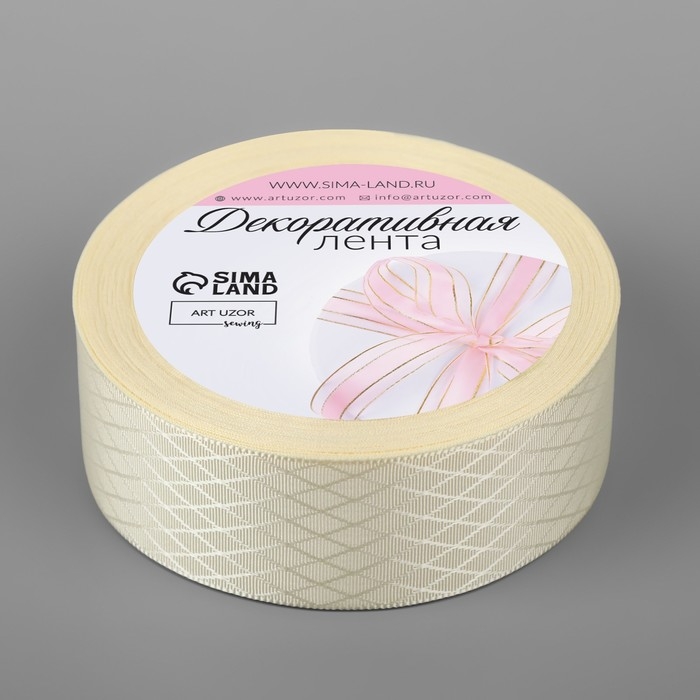 Лента декоративная «Ромбы», 25 мм × 9,1 ± 0,5 м, цвет молочный