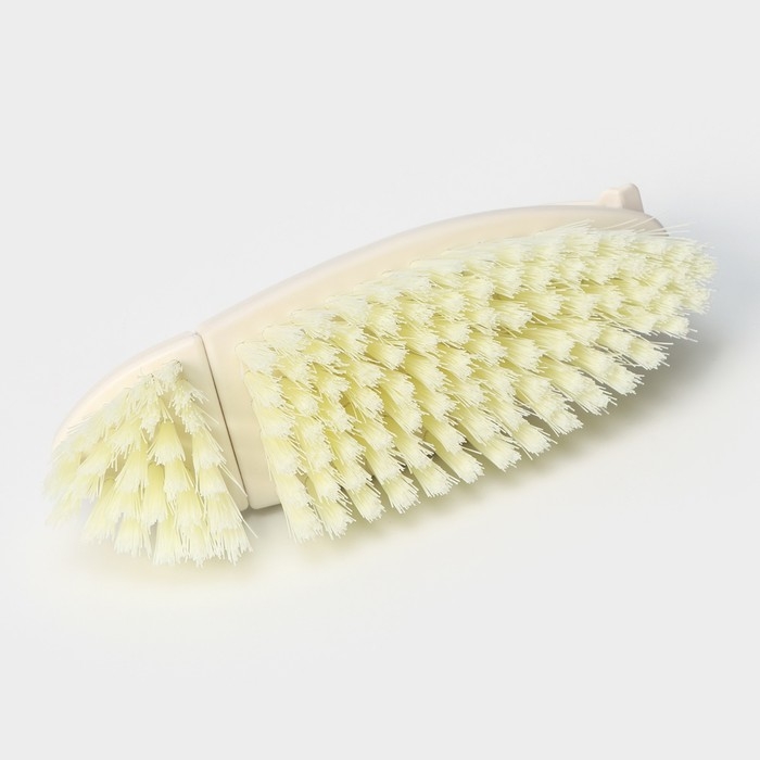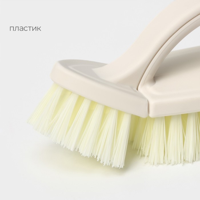 - Щётка имеет две стороны с разной жесткостью щетины, что позволяет выбрать оптимальный вариант для разных типов поверхностей и материалов.