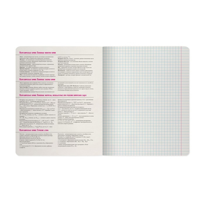 Ультрамодная обложка выполнена из плотного картона 190 г/кв.м и покрыта матовой пленкой Soft Touch, создающей приятные тактильные ощущения. Скругленные углы обложки и блока предохраняют тетрадь от замятий.Блок изготовлен из белой офсетной бумаги плотностью 60 г/кв.м. 48 листов блока и обложка надежно скреплены двумя металлическими скобами.Пять страниц справочного материала - отличное подспорье в деле освоения новых знаний.