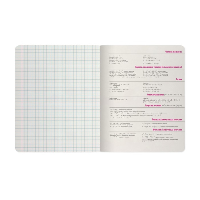 Ультрамодная обложка выполнена из плотного картона 190 г/кв.м и покрыта матовой пленкой Soft Touch, создающей приятные тактильные ощущения. Скругленные углы обложки и блока предохраняют тетрадь от замятий.Блок изготовлен из белой офсетной бумаги плотностью 60 г/кв.м. 48 листов блока и обложка надежно скреплены двумя металлическими скобами.Пять страниц справочного материала - отличное подспорье в деле освоения новых знаний.