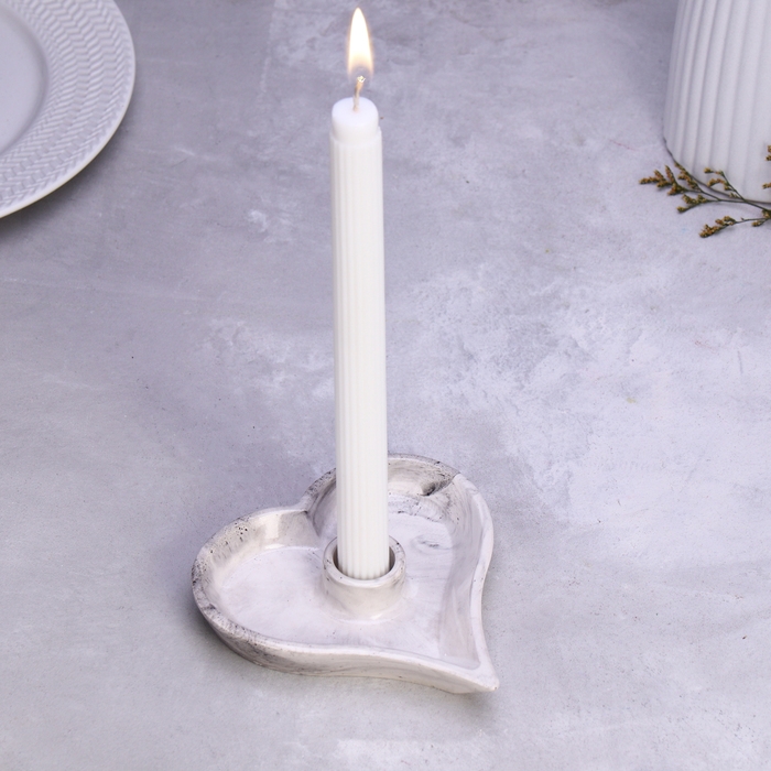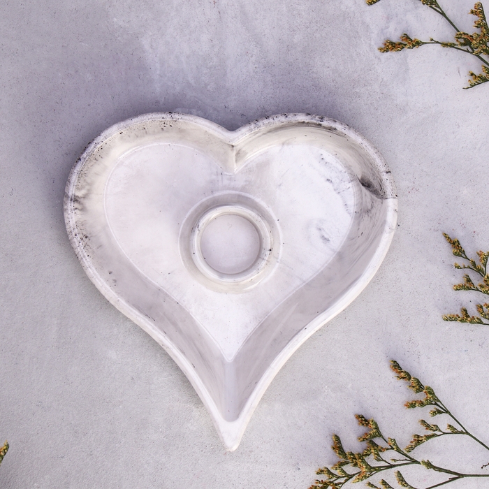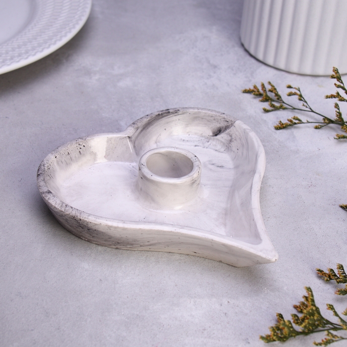 Подсвечник "Сердце" из гипса,14х2,5см,мрамор с чёрными полосками