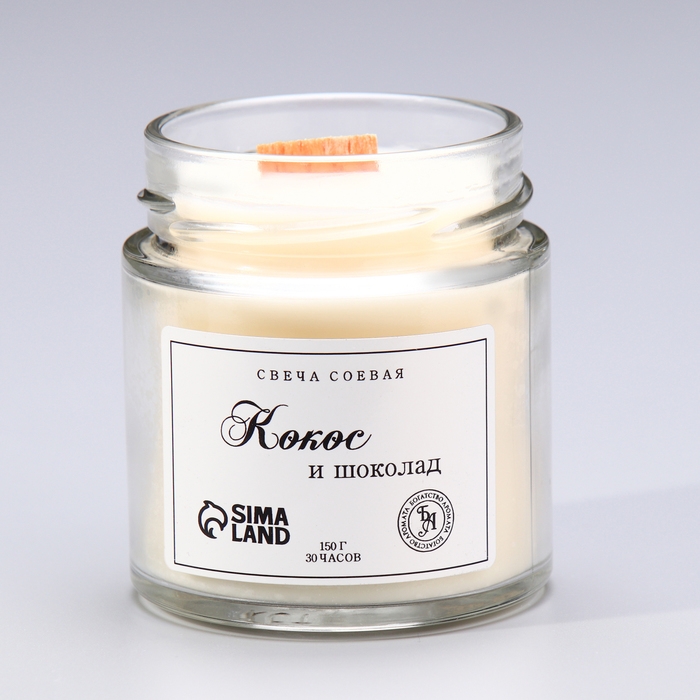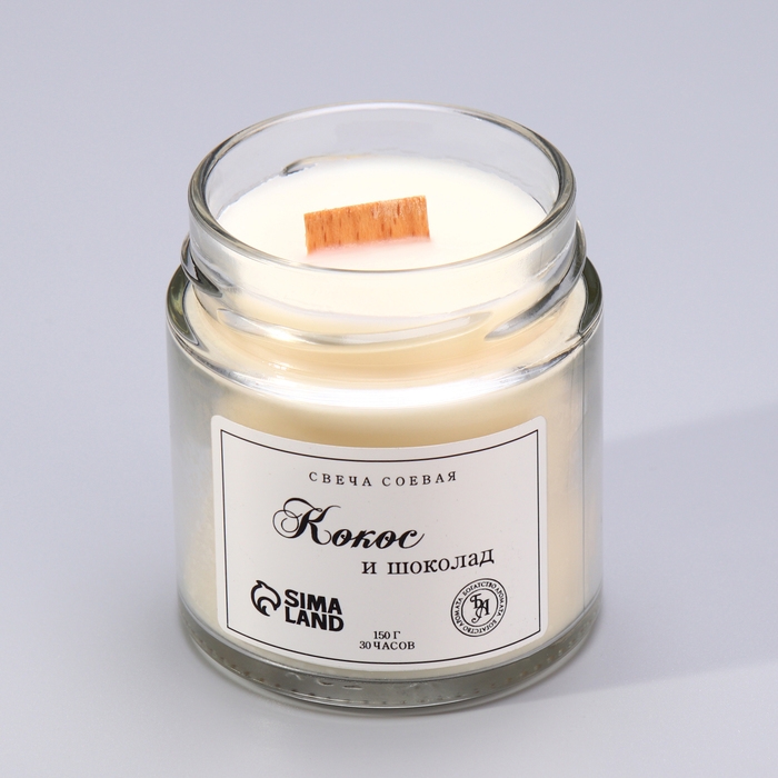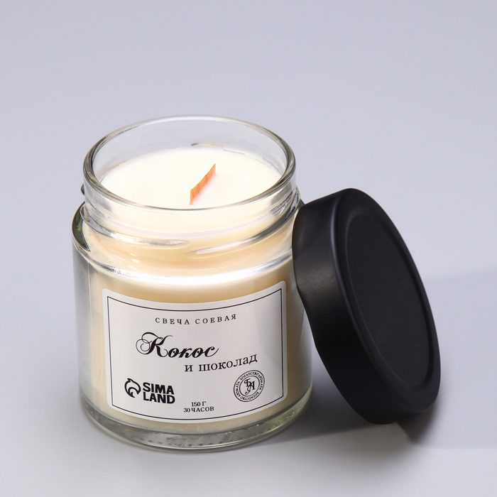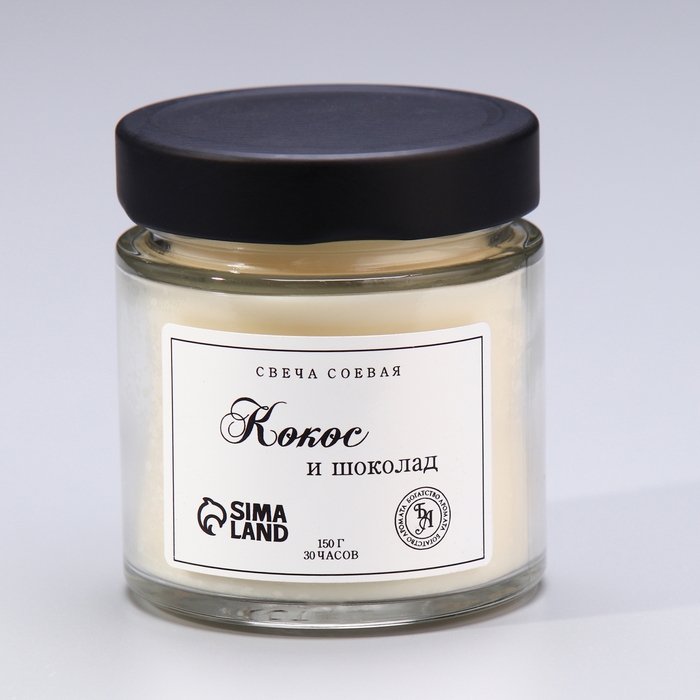 Свеча ароматическая из соевого воска в банке, 150 г, кокос и шоколад