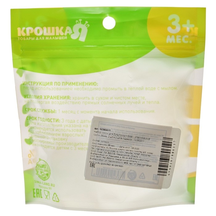 Соска на бутылочку, от 3 мес., классическое горло, средий поток, №1, 2+1 шт.