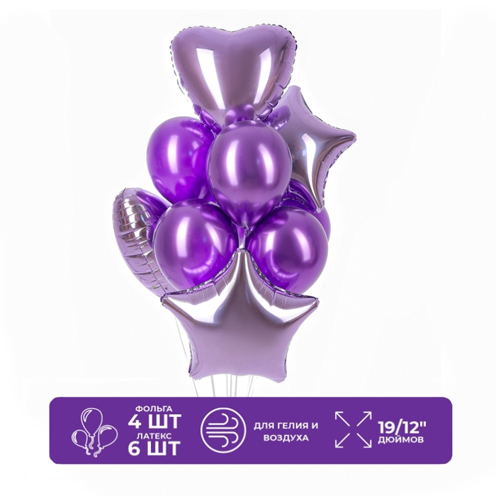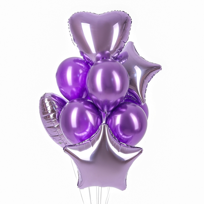 Набор шаров «Праздничный» фольга, латекс, цвет сиреневый, 10 шт.