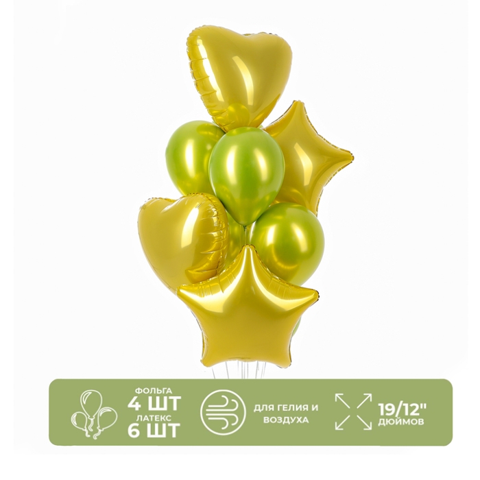 Набор шаров «Праздничный» фольга, латекс, цвет золото, 10 шт.