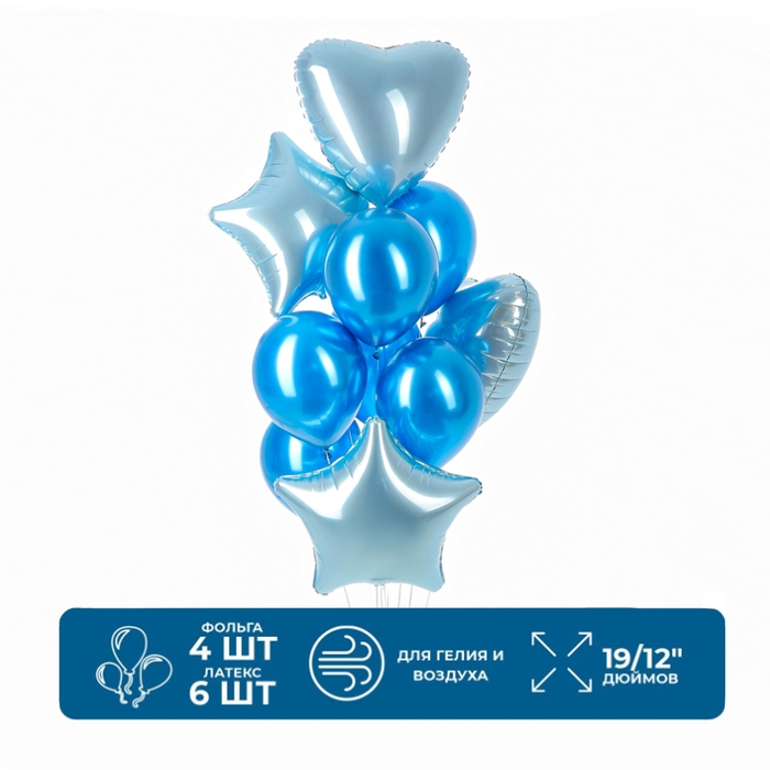 Набор шаров «Праздничный» фольга, латекс, цвет голубой, 10 шт.
