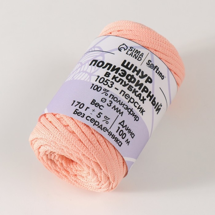 Шнур плоский 3 мм полиэфирный в клубках 100м/170г (+/- 5%) персик-1053