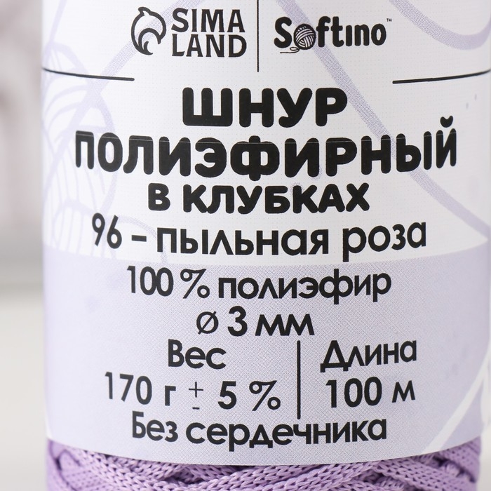 Шнур плоский 3 мм полиэфирный в клубках 100м/170г (+/- 5%) пыльная роза-96