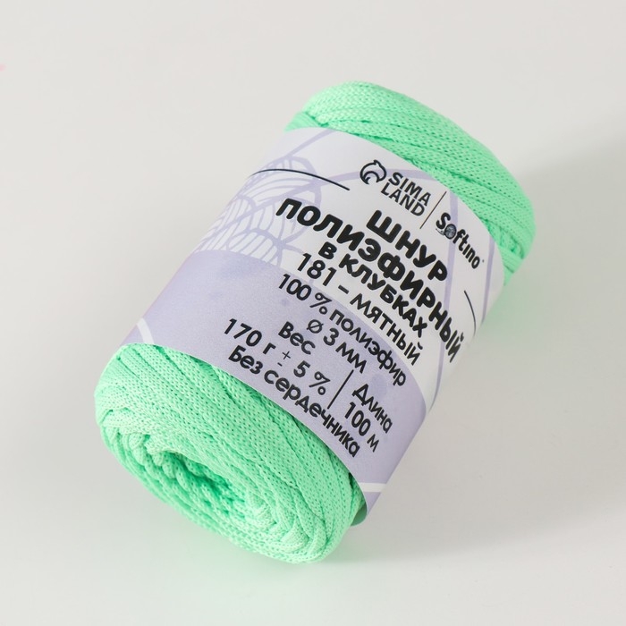 Шнур плоский 3 мм полиэфирный в клубках 100м/170г (+/- 5%) мятный-181